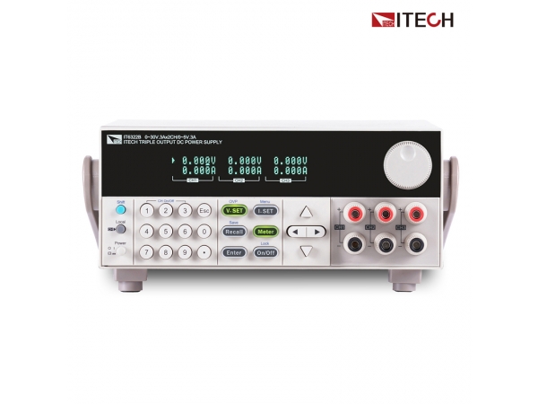 选择同步设置,可以将通道1(CH1) 和通道2(CH2), 通道2(CH2)和通道3(CH3) 或三个通道全部设置为同步模式。选择为同步以后,若改变任一参数,其他通道的对应参数也会成比例改变。例如,先设置CH1 和CH2 的电压和电流,CH1: 4V, 1A;CH2: 8V, 2A。将CH1 和CH2 设置为同步状态,在输出关闭和Meter 状态,VFD 将显示如下: